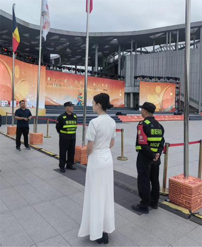 本屆電影展由成都、德陽“雙城聯動”,開幕式在德陽舉辦,德陽錦元保安負責開幕式現場安全保衛工,前期與承辦方多次溝通協調、現場勘察及方案優化,最終敲定安保執行方案。本次活動場地設在開放區域,實行半封閉引流,增加了安保人員執勤壓力,對所有入場人員實施外圍分流、通行驗票、逢過必檢,分區座次再分流的通行流程;現場秩序、舞臺、電路線纜密集區域,設置專人定點守護;周邊高頻次巡邏、機動應急處突、通訊保障有力等多項安保措施,德陽文旅、公安機關多次親臨現場指導,確保了本屆兒童電影展的安全保衛工作有序進行,受到多方肯定,圓滿完成安保任務,為培養和鍛煉隊伍總結了經驗。